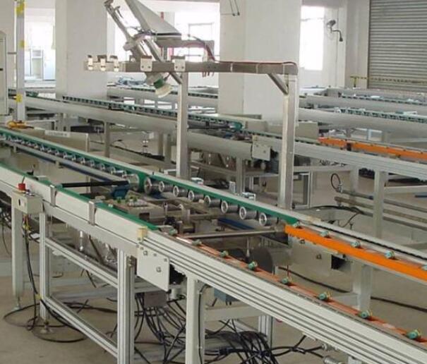 自动流水线设备设计的输送带的安全系数。大倾角自动化流水线发生断带事故,其危害性远比水平输送机大得多。因此,输送带的安全系数应该取较大数值。但是安全系数也不宜取值过大,因为取较大的安全系数,就意味着要选取较高规格(强度)的输送带。输送带的强度越大,必然厚度越大,其横向刚度也就越大,成槽性也就越差,超过限度时,就不能保证输送带对物料实施有效的夹持。因此,当输送带因带强太大而不能按设计要求成槽时,就必须考虑采取其他措施,既要能满足输送带强度要求,又能满足成槽性要求。